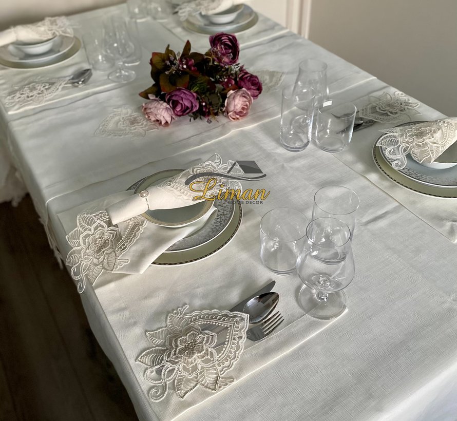 beyaz mermer desen masa ortusu kumas supla runner amerikan servis desen izmir
